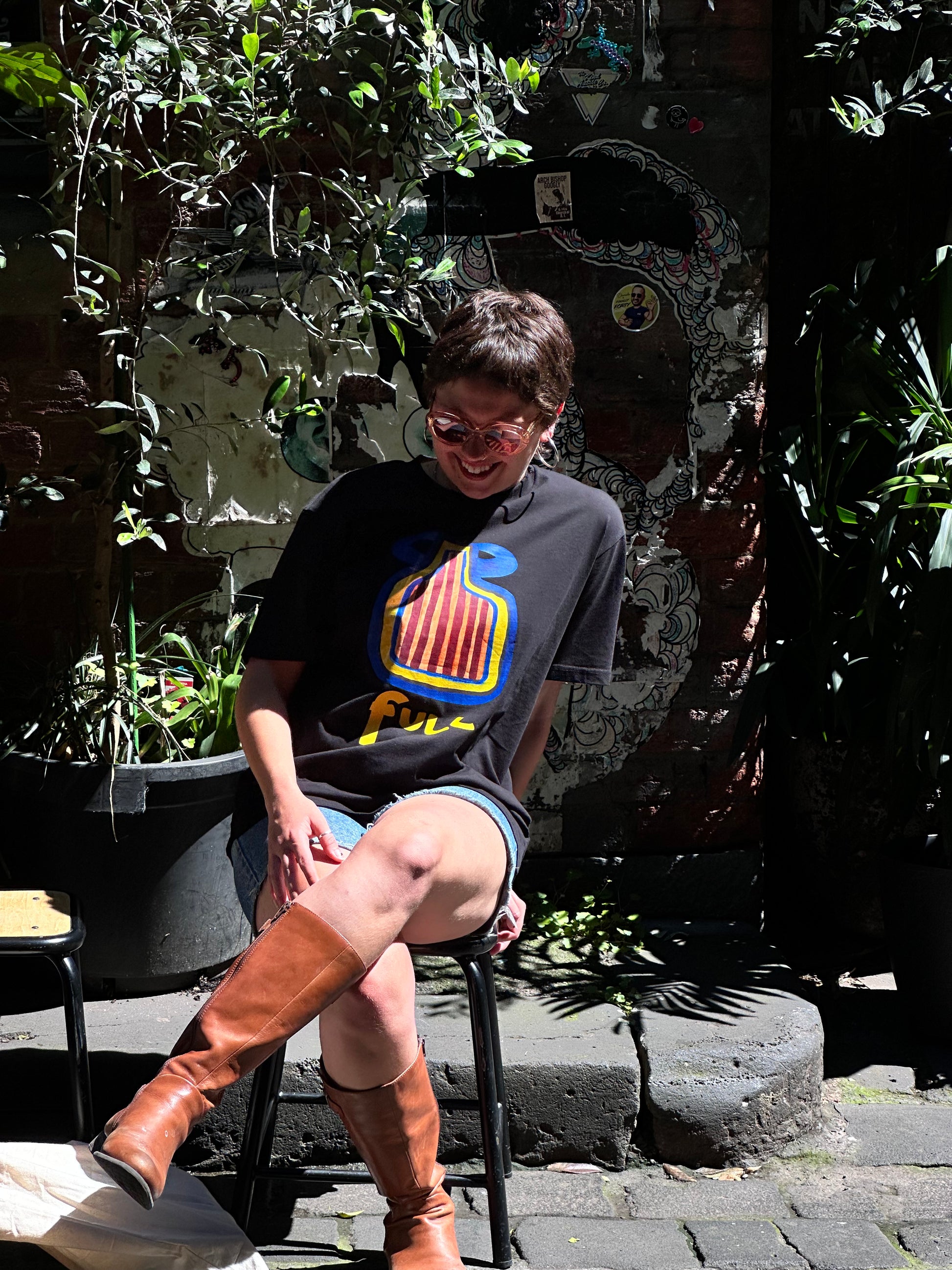 peaceFULL tee is complete and balanced, its bold primary colours, solid & resolved, evoking the grounded simplicity we experience when we feel and protect our peace. Wear it as your personal peace charm.